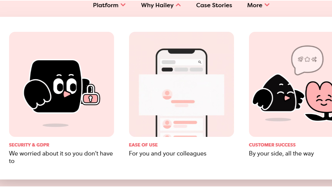 As far the compliance issues are concerned, Hailey maintains a retention policy for all employee data in accordance with the GDPR. As it says in the website “To ensure compliance, we have no data storage with US providers, all providers are EU-owned with servers in Europe.”